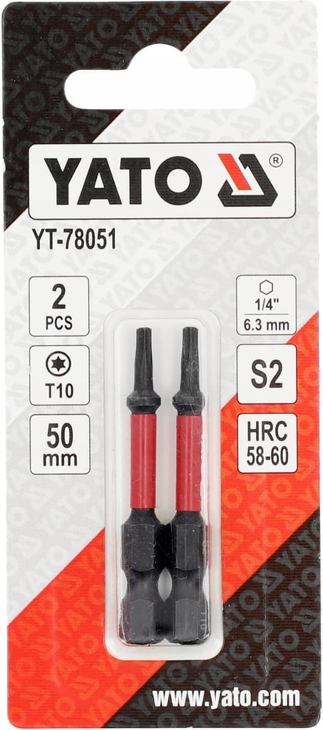 BITY GROTY KOŃCÓWKI UDAROWE DO WKRĘTARKI TORX 1/4" 50mm T10 2szt. YATO YT-78051