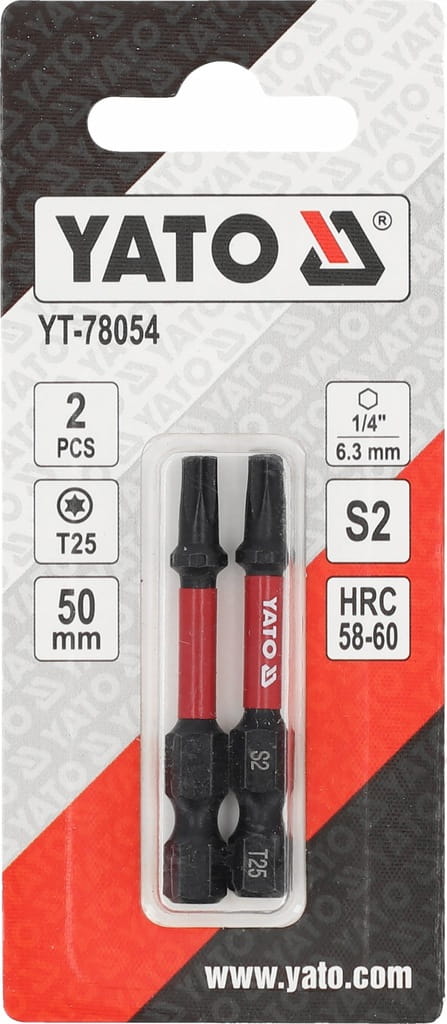 BITY GROTY KOŃCÓWKI UDAROWE DO WKRĘTARKI TORX 1/4" 50mm T25 2szt. YATO YT-78054