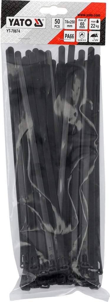 Opaski plastikowe rozpinane 7,6x250mm czarne - 50 sztuk - YATO